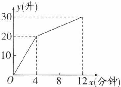 5. 一个装有进水管和出水管的容器,从某时刻起只打开进水管进水,经过一段时间,再打开出水管放水. 至12分钟时,关停进水管,在打开进水管到关停进水管这段时间内,容器内的水量 $ y $(升)与时间 $ x $(分钟)之间的函数关系如图所示. 则关停进水管后,将容器内的水恰好放完需要()