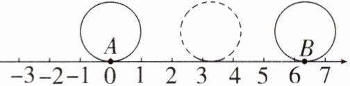 14. 如图,半径为1个单位长度的圆从原点沿数轴向右滚动一周,圆上的一点$A$(滚动时与原点重合)由原点到达点$B$,则$AB$的长度就等于圆的周长,所以数轴上点$B$代表的数是____,它是一个____数。