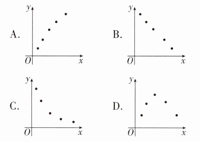 6. 中国古人用十二根长短不同的竹子做成律管,用它们分别吹出十二个标准音,称为十二律。十二根竹管的管长和频率乘积为定值,设管长为$x$,频率为$y$,选取$5组数对(x,y)$,在平面直角坐标系中进行描点,则下列描点正确的是()