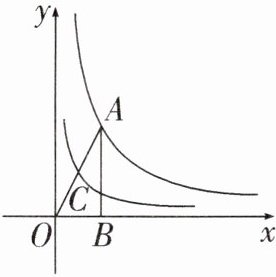 7. 如图,反比例函数$y= \frac{8}{x}(x > 0)的图象经过直角三角形OAB的顶点A$,$C为斜边OA$的中点,则过点$C$的反比例函数的表达式是()