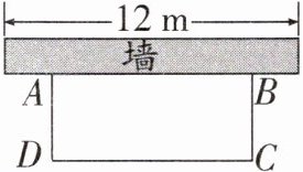 20. (12分)如图,科技小组准备用材料围建一个面积为$60m^2的矩形科技园ABCD$,其中一边$AB$靠墙,墙长$12m$。设$AD的长为x m$,$DC的长为y m$。