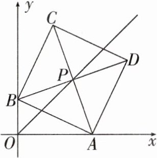 (2) 求证:无论点 $ A $ 在 $ x $ 轴正半轴上、点 $ B $ 在 $ y $ 轴正半轴上怎样运动,点 $ P $ 都在 $ \angle AOB $ 的平分线上;