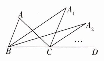 13. 如图,$∠ACD是△ABC$的外角,$∠ABC的平分线与∠ACD的平分线交于点A_{1},∠A_{1}BC的平分线与∠A_{1}CD的平分线交于点A_{2}... ... ∠A_{n-1}BC的平分线与∠A_{n-1}CD的平分线交于点A_{n}$.设$∠A= θ$,则: