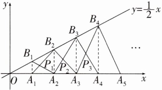 15. 如图,已知$A_{1},A_{2},A_{3},... ,A_{n}$是 x 轴上的点,且$OA_{1}= A_{1}A_{2}= A_{2}A_{3}= ... =A_{n}A_{n+1}= 1$,分别过点$A_{1},A_{2},A_{3},... ,A_{n+1}$作 x 轴的垂线交一次函数$y= \frac {1}{2}x的图象于点B_{1},B_{2},B_{3},... ,B_{n+1}$,连结$A_{1}B_{2},B_{1}A_{2},A_{2}B_{3},B_{2}A_{3},... ,A_{n}B_{n+1},B_{n}A_{n+1}依次产生交点P_{1},P_{2},P_{3},... ,P_{n}$,则$P_{n}$的横坐标是____.