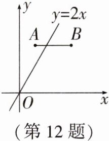 12. 如图,在平面直角坐标系中,点 A,B 的坐标分别为$(1,3),(n,3)$,若直线$y= 2x$与线段 AB 有公共点,则 n 的值可以为____.(写出一个即可)