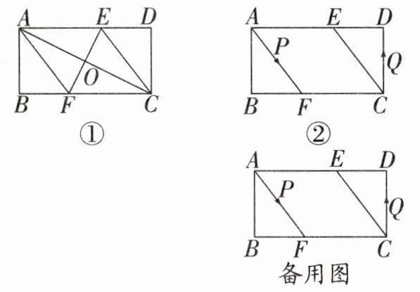 (1)如图①,连结$AF$,$CE$,求证:四边形$AFCE$为菱形,并求$AF$的长。