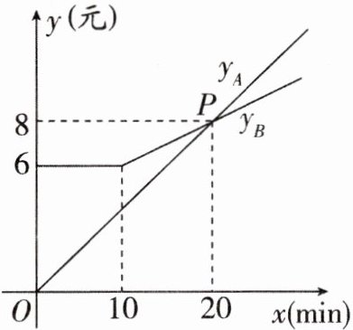 因为点P的坐标为(20,8),所以交点P表示的实际意义是当骑行时间为20min时,A、B两种品牌的共享电动车收费都为8元。