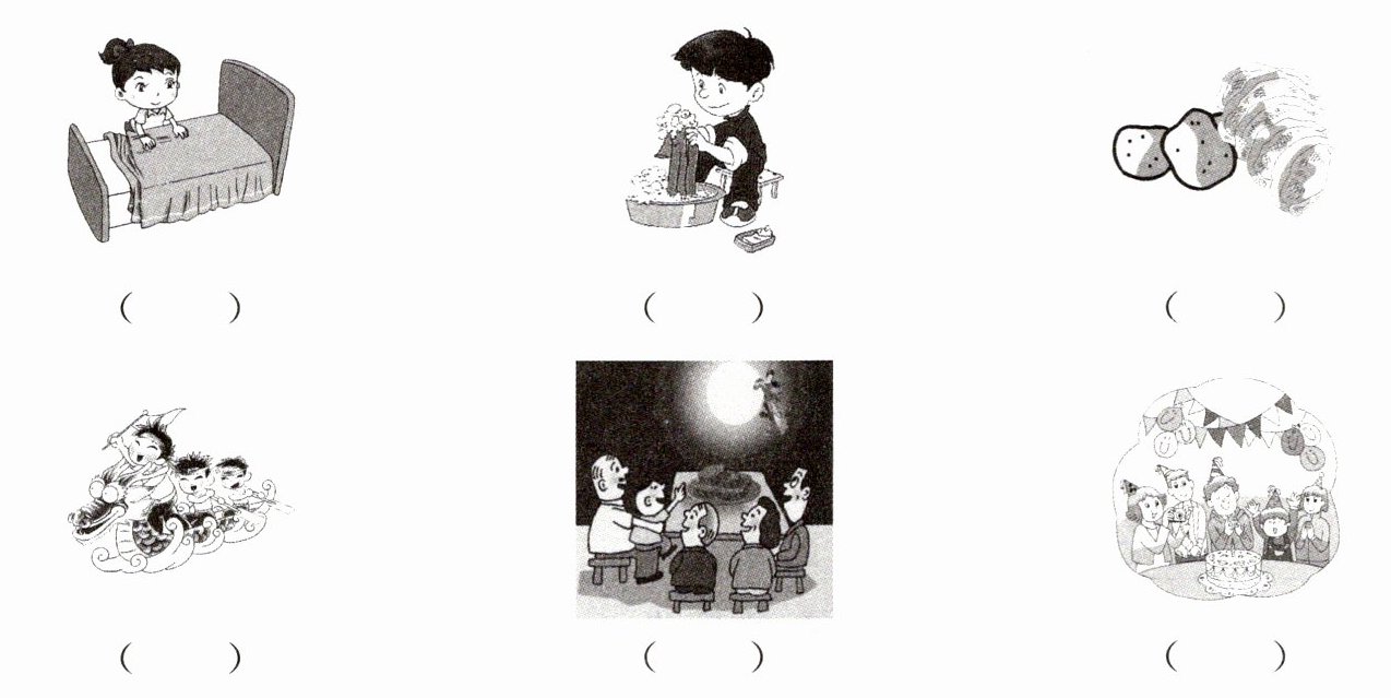 二、听录音,给下面的图片排序。