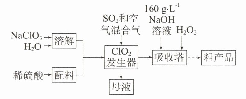 进入“母液”中。根据题意,纯ClO₂易分解爆炸,因此发生器中鼓入空气的作用是稀释ClO₂以防止爆炸。(2)吸收塔可能参与反应的反应物有