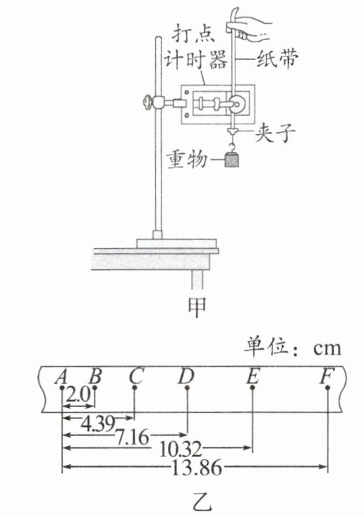 11. (10分)如图甲所示,某同学用打点计时器测量重力加速度$g$。