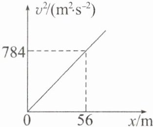 9.BD 根据速度与位移的关系式可得,汽车的加速度大小为$a=\frac {v^{2}}{2x}=\frac {784}{2×56}m/s^{2}=7m/s^{2}$,故A错误,B正确;该汽车由静止匀加速运动到100km/h所需的时间约$t=\frac {v'}{a}=\frac {100}{3.6×7}s\approx 4s$,故C错误,D正确。