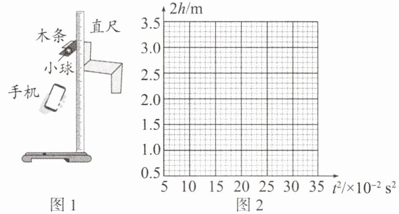 (2)收集到的数据见下表,请在图2的坐标纸上作出$2h-t^{2}$图像。