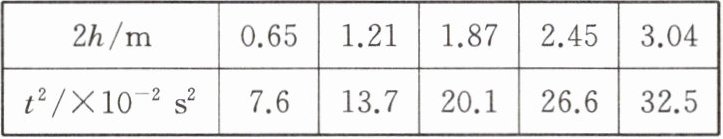 (3)通过$2h-t^{2}图像可得到重力加速度g= $____$m/s^{2}$(结果均保留两位小数)。