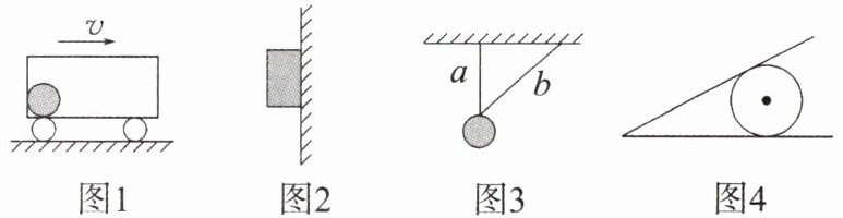 )A. 图1小球随车厢(底部光滑)一起向右做匀速直线运动,则车厢左壁对小球有弹力