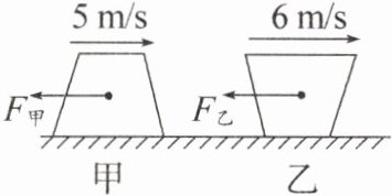 3. 如图所示, 两个相同的木块甲、乙, 在外力的拉动下, 分别以 5 m/s 和 6 m/s 的速度在同一平面上向右做匀速直线运动, 受到的摩擦力分别为 $ F_{\text{甲}} $ 和 $ F_{\text{乙}} $, 以下说法正确的是 (