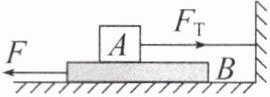 5. 如图所示, 一木板 B 放在水平面上, 木块 A 放在木板 B 的上面, A 的右端通过一根不可伸长的轻绳固定在直立墙壁上, 用力 $ F $ 向左拉动木板 B, 使它以速度 $ v $ 做匀速运动, 这时轻绳的张力为 $ F_{\text{T}} $, 下列说法正确的是 (