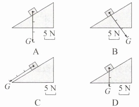 4. 一个重15N的物体沿斜面下滑,下列选项中关于该物体所受重力的图示,正确的是 (