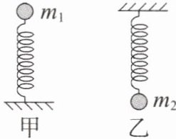 6. 如图甲所示,竖直轻弹簧下端固定在水平地面上,将质量$m_{1} = 0.4kg$的小球置于弹簧上端,平衡时弹簧仍竖直且长度为11cm;如图乙所示,再将这根弹簧上端固定,将质量$m_{2} = 0.6kg$的小球固定在弹簧下端,平衡时弹簧的长度为12cm,重力加速度$g取9.8m/s^{2}$,则该弹簧的劲度系数为 (