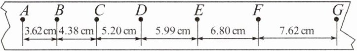 6.某同学在“练习使用打点计时器”的实验中,用打点计时器记录了被拖动的纸带的运动情况,在纸带上确定出A、B、C、D、E、F、G共7个计数点,已知纸带做加速运动。相邻计数点间的距离如图所示,每两个相邻的计数点之间的时间间隔为0.20s。