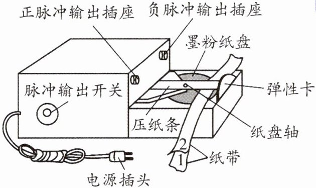 (2) 在安放纸带时,要检查墨粉纸盘是否已经正确地套在纸盘轴上,还要检查墨粉纸盘是否夹在两条纸带之间。