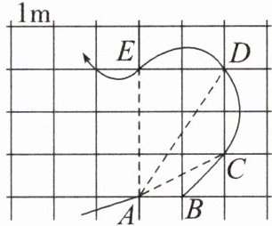 【典例】如图所示,物体沿轨迹 $ ABCDE $ 的箭头方向运动。每一正方形小格的边长为 $ 1 m $,沿 $ AB $、$ ABC $、$ ABCD $、$ ABCDE $ 四段轨迹运动所用的时间分别是 $ 1 s $、$ 2 s $、$ 3 s $、$ 4 s $,下列说法不正确的是(