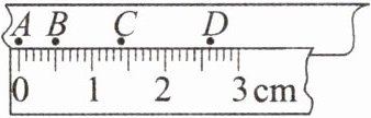 【解析】打点计时器所用电源的频率为50Hz,打点周期$T_{0}=0.02s$。根据平均速度的定义得,纸带在AC段的平均速度$\overline {v}_{AC}=\frac {x_{AC}}{2T_{0}}=\frac {0.014}{2×0.02}m/s=0.35m/s$;纸带在AD段的平均速度$\overline {v}_{AD}=\frac {x_{AD}}{3T_{0}}=\frac {0.026}{3×0.02}m/s\approx 0.43m/s$;AC段时间比AD段时间更短,故AC段的平均速度与B点的瞬时速度更接近,即B点的瞬时速度更接近0.35m/s。