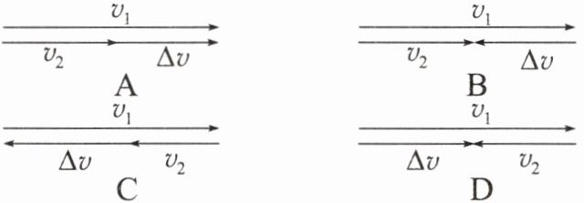 3. “礼让行人”规则大大提高了行人过马路的安全性。为“礼让行人”,一辆车沿直线减速行驶,该车行驶的初速度为$v_1$,末速度为$v_2$,这个过程中速度的变化量为$\Delta v$,下列能正确反映该车减速的示意图为(