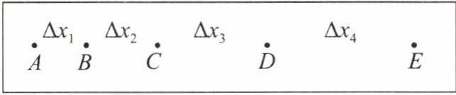 B 在相邻的两个计数点之间还有4个点未画出,所以相邻计数点间的时间间隔T = 0.1s,加速度a = $\frac{x_{CD}-x_{AB}}{2T^2}$,代入数据得a = 2.0m/s²,故B正确。