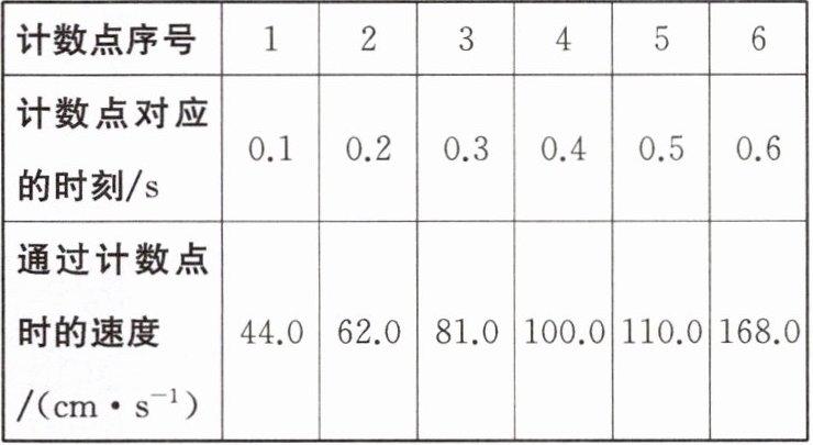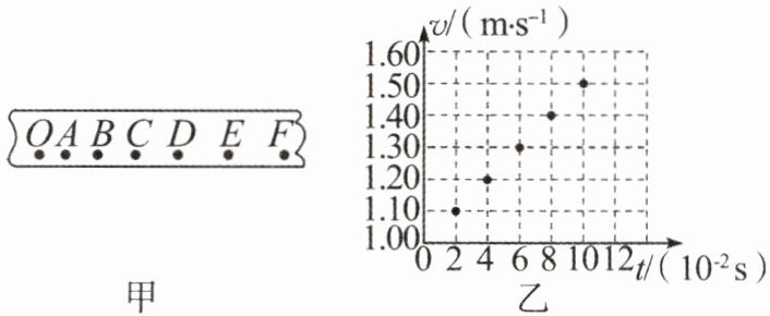 (2)该同学分别算出打各点时小车的速度,然后根据数据在v-t坐标系中已描好点,请在图乙中作出小车的v-t图像,并求出小车的加速度$a= $____$m/s^{2}$。