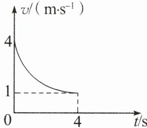 D $v - t$图像只能描述直线运动,所以机器人做直线运动,A错误;根据$v - t$图像中图线的斜率表示加速度可知,机器人做减速运动,且加速度减小,速度的变化率减小,B、C错误;若机器人做匀减速直线运动,其位移为$x = \frac{(1 + 4)}{2}×4m = 10m$,而实际位移对应的$v - t$图像与坐标轴围成的面积,小于10m,D正确。