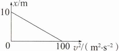 2. 一辆遥控汽车在平直的轨道上匀速运动,为了测试其刹车性能,从 $ t = 0 $ 起开始刹车,刹车过程中遥控汽车的位移与速度平方的关系如图所示。下列说法正确的是 (