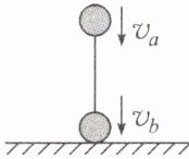 B 设两球分别为球 $ a $ 和球 $ b $,下面的球 $ b $ 落地时两球的速度分别为 $ v_{a} $、$ v_{b} $。无论是从 3 层还是 4 层阳台上自由下落,落地时,两球的距离差始终为绳长 $ l $。人站在 4 层阳台上放手后,球 $ a $ 在球 $ b $ 落地瞬间的瞬时速度较大,根据位移公式得 $ l = v_{a} \Delta t + \frac{1}{2}g(\Delta t)^{2} $,在 $ l $ 相同,$ v_{a} $ 较大时,时间差 $ \Delta t $ 较小,故 B 正确。