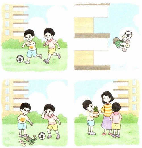 突然,小杭用力一踢,足球不受控制地冲向空中,只听到“嘭”的一声,李阿姨家的花盆落到地上,摔碎了。