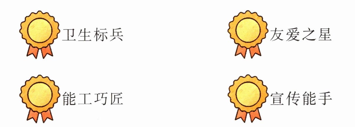 3.评价鉴赏 森林里正在举办一年一度的颁奖典礼,熊爷爷和给他送材料的动物们都获奖了,请你为他们颁发合适的奖牌吧。(2分)