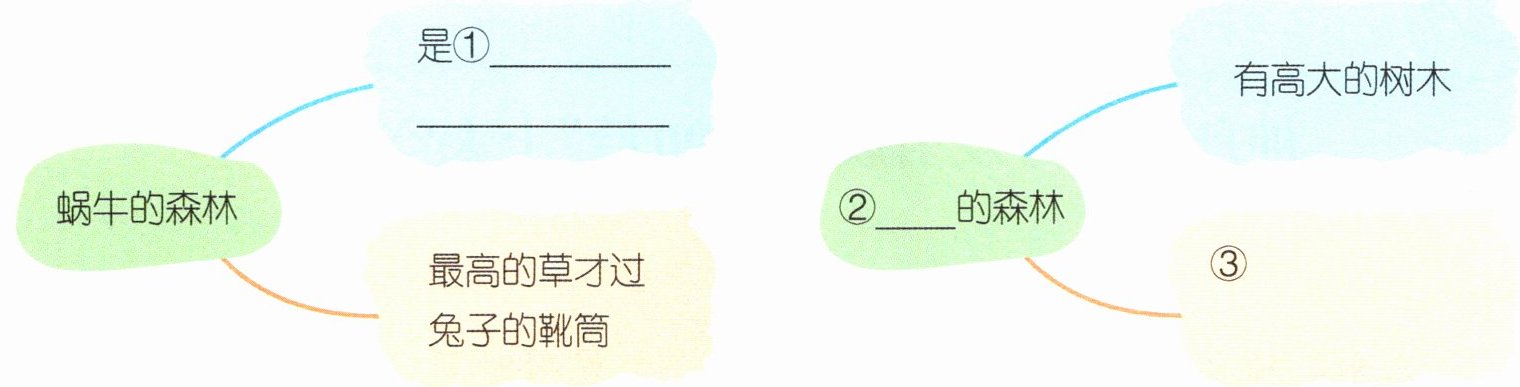 4. (示例1)①√ 蜗牛对更大的森林充满了好奇,他想看看比大象的森林还大的森林长什么样子
