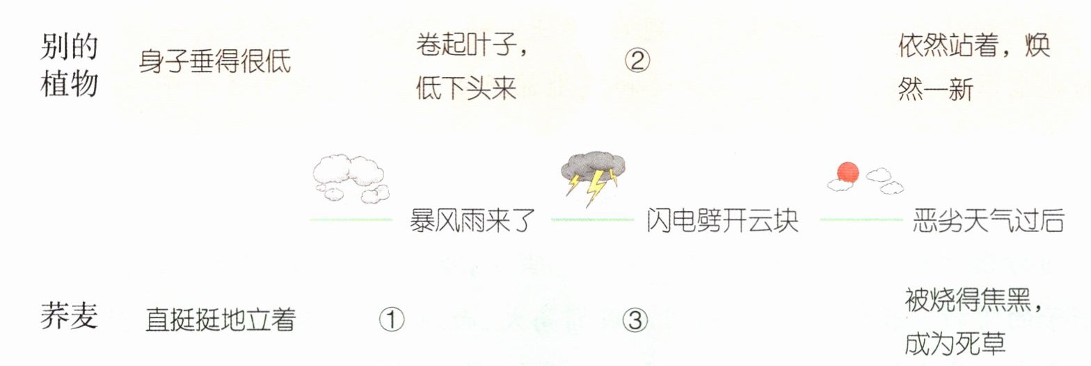 4.创意运用 荞麦看到自己被烧得焦黑,懊悔极了,此时它心里可能会想:____。(3分)