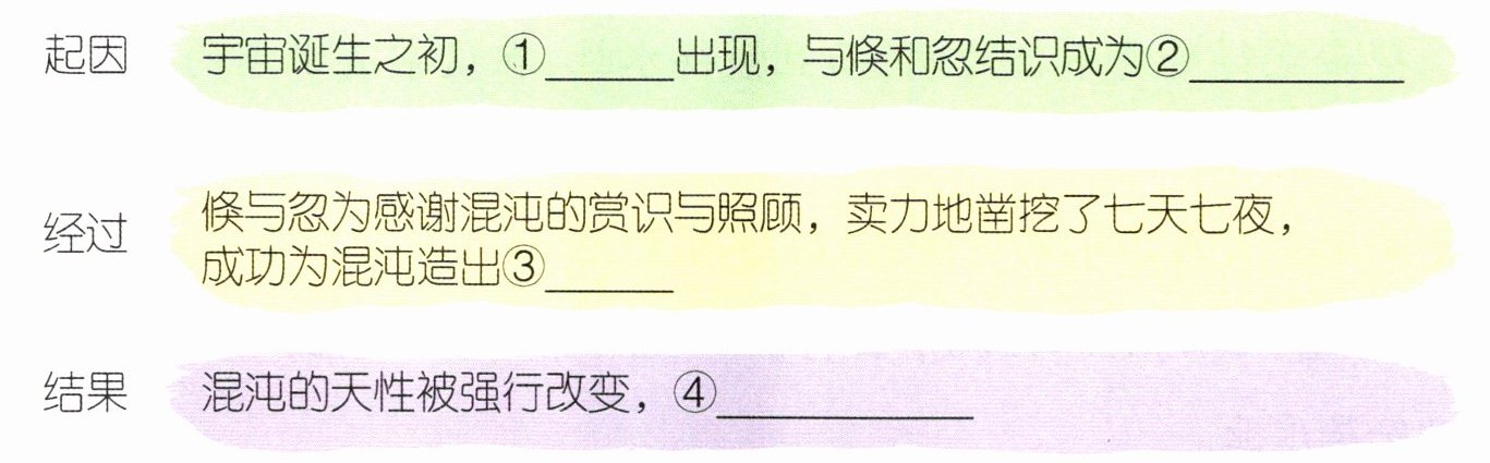起因 宇宙诞生之初,①____出现,与倏和忽结识成为②____