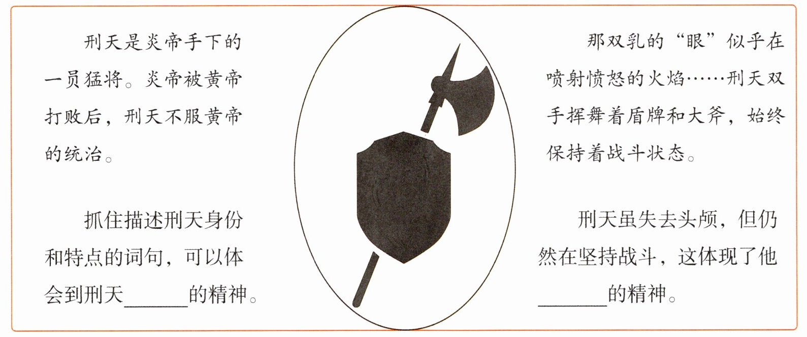 抓住描述刑天身份和特点的词句,可以体会到刑天____的精神。
