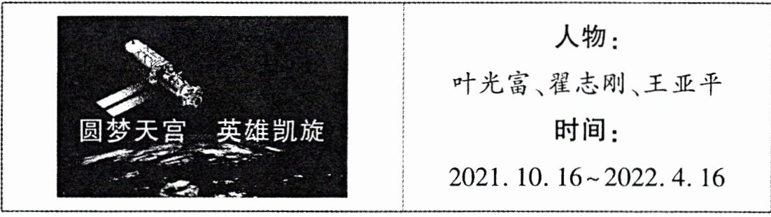 ||人物:叶光富、翟志刚、王亚平 时间:2021.10.16~2022.4.16|