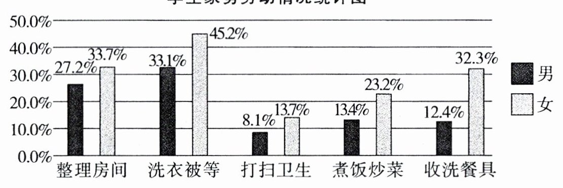 (2)【析图表】请你根据下图,写出一条反映学生家务劳动问题的调查结论。要求:语言简明,不超过 20 个字。(4 分)