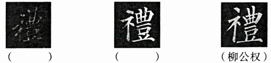 (1)【活动一 辨"礼"】下面是书法家颜真卿、李邕、柳公权的书法作品。请结合作品特点判断前两幅字的作者。(将作者姓名写在相应的括号内)(2 分)