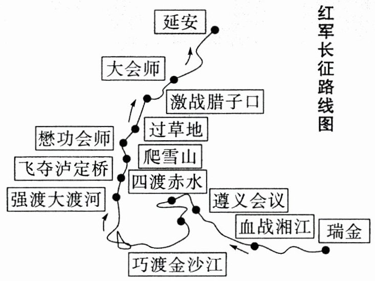 (1)将诗句中提及的事件,用“○”在路线图中圈出。(2 分)