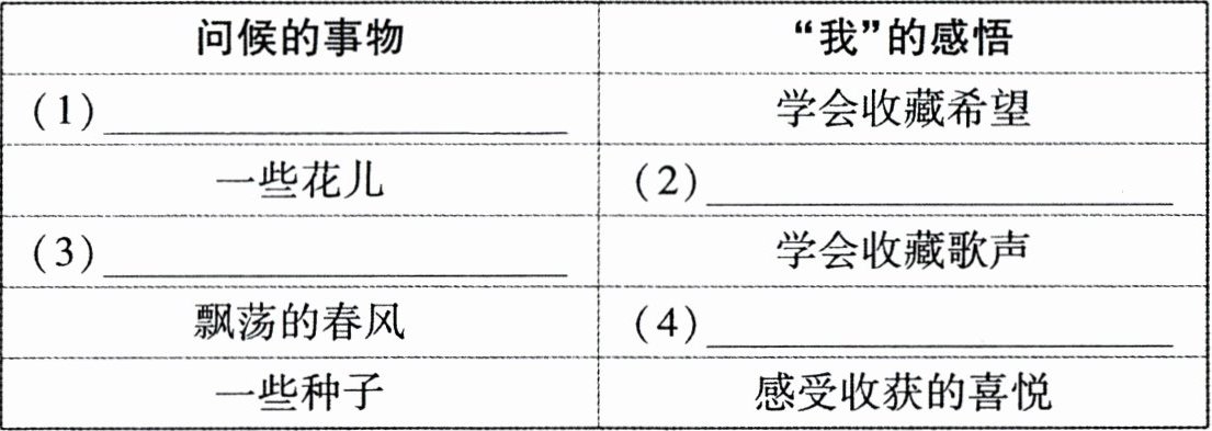 1. 阅读文章,梳理作者在春天问候的事物及感悟。(4 分)