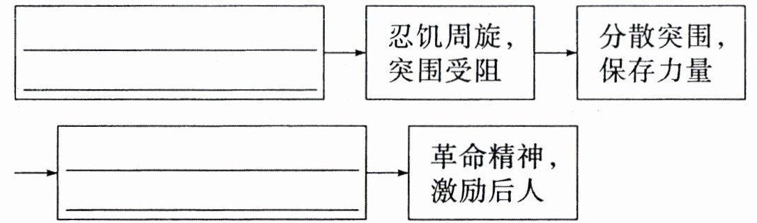 ______→忍饥周旋,突围受阻→分散突围,保存力量→______→革命精神,激励后人