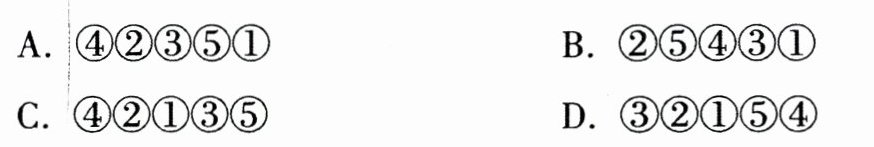 C 【解析】观察选项可知①句或②句是总起句,排首位。因③句是对④句的解释,所以③句紧跟④句,①句和⑤句有明显的时间先后顺序,故⑤句排在①句后。因此正确的排序应为②④③①⑤。