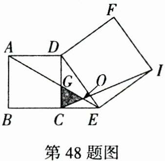 48. (2024陕西JDFZ)如图,四边形 ABCD、DEIF 均为正方形。在三角形 CDE 中,CE= 6,CD= 8,DE= 10。连接 AE 交 CD 于点 G,连接 CI 交 AE 于点 O。回答下列问题:
