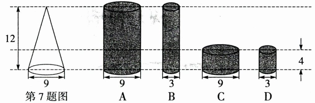 7. (2024 陕西 GX8C)如图的圆柱与左边圆锥体积相等的是(