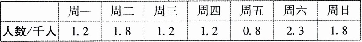 | 人数/千人 | 1.2 | 1.8 | 1.2 | 1.2 | 0.8 | 2.3 | 1.8 |