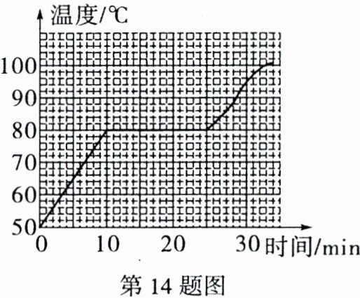 14. (2023 深圳龙岗)如图是某种晶体熔化(晶体由固态到液态的过程)时温度随时间变化的图象)。晶体从开始熔化到熔化结束的过程中保持温度不变,这一温度称为晶体的熔点,该晶体熔点为