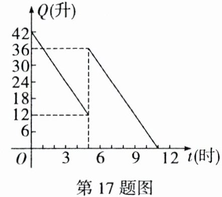 17. (2023 陕西 CDFZ)机动车出发前油箱内有油42升,行驶若干小时后,途中在加油站加油若干升,油箱中余油量Q(升)与行驶时间t(时)之间的关系如图所示,根据图回答问题: